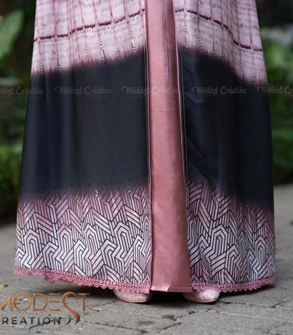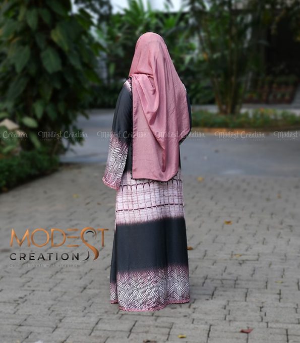 (Black and Dusty Rose) Semi Double Layered Abaya