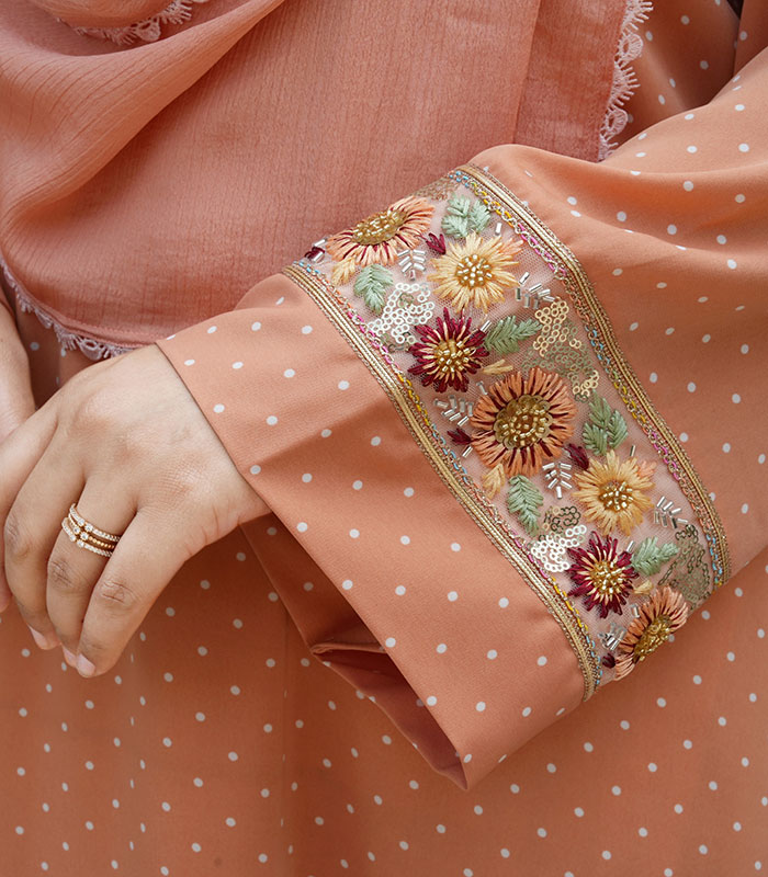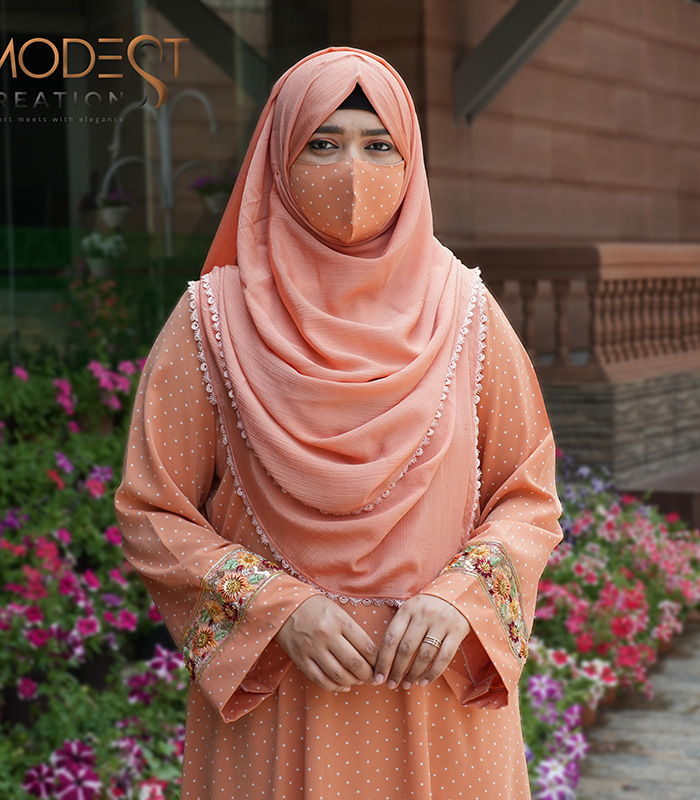 SKU: Product Code –541 Category: Full Length Abaya Tags: (Melon Orange) Polka Dot abaya, Abaya, Abaya And Hijab Set, Alex Fabric, Hijab, Mask, Modest Creation, Shimmery soft silk fabric