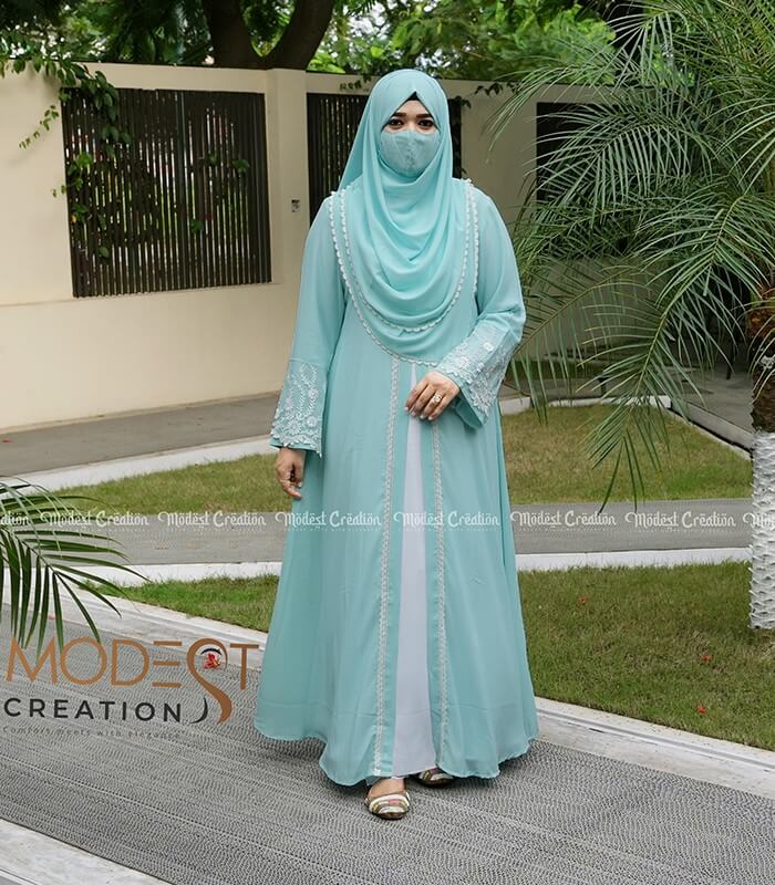 - Solid color double layered abaya can be an ideal choice for a chic and classy look.