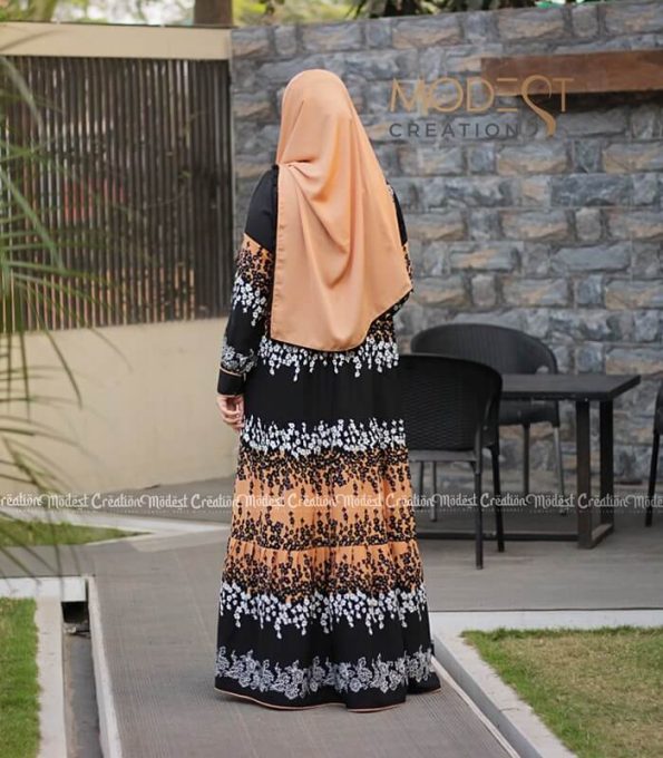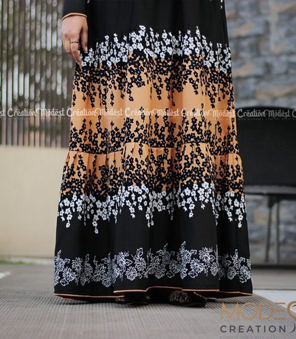 - Check out our new printed frilled style abaya in Black and golden combination.